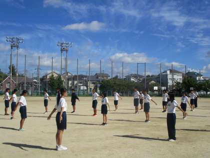 3年生:保健体育の授業〜ラジオ体操〜 公開日 2024/09/18 更新日 2024/09/18 学校 3年生は、保健体育の授業で、体育大会に向けてラジオ体操の復習に取り組んでいます。 生徒は、実技を通して、腕や脚の動きの再確認をしているようです。 ※写真は、5・6組の授業の様子です。