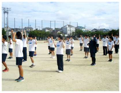 2年生:保健体育の授業 〜細部の動作にこだわる〜 公開日 2024/09/19 更新日 2024/09/19 学校 2年生の保健体育の授業では、体育大会に向けてラジオ体操の練習が行われています。 腕や脚の細かな動きまできっちり、確実にやりきることを目標の1つとして練習が行われているようです。 ※写真は、3・4組の授業の様子です。