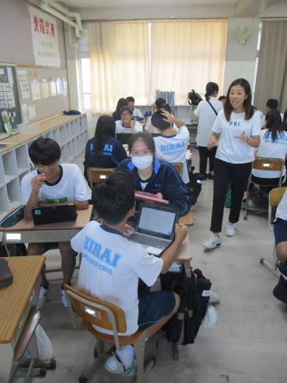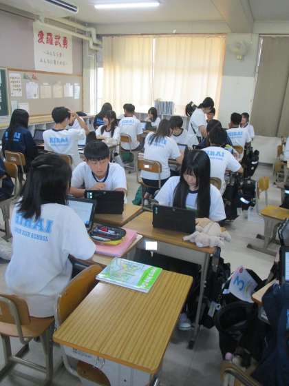 3年生3組の授業(英語)の様子 公開日 2024/09/20 更新日 2024/09/20 学校 20日(金)、3年生3組の6時間目は、英語の授業でした。 生徒は、グループで関係代名詞を用いて人物を紹介する英文を作る課題に取り組んでいました。