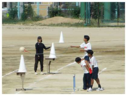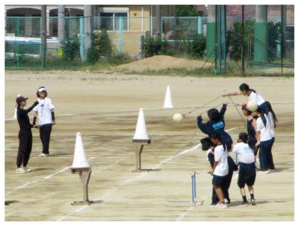 1年生5・6組の授業(保健体育)の様子 公開日 2024/10/02 更新日 2024/10/02 学校 2日(水)、1年生5・6組の4時間目の授業は、保健体育の授業でした。 学年種目「ローハイド」の練習をしていました。1回目のスローイングで、的となるコーンにボールが当たる確率が高まっているようです。