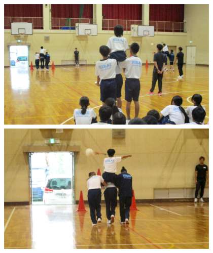 1年生1・2組の授業(保健体育)の様子 公開日 2024/10/03 更新日 2024/10/03 学校 3日(木)、1年生1・2組の3時間目は、保健体育の授業でした。 体育大会に向けて学年種目の練習が行われていました。