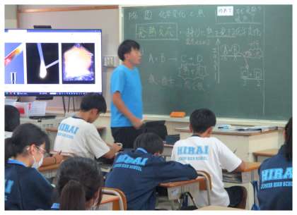 3日(木)、2年生5組の5時間目は、理科の授業でした。 熱を発する化学反応について学習していました。