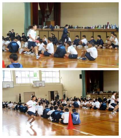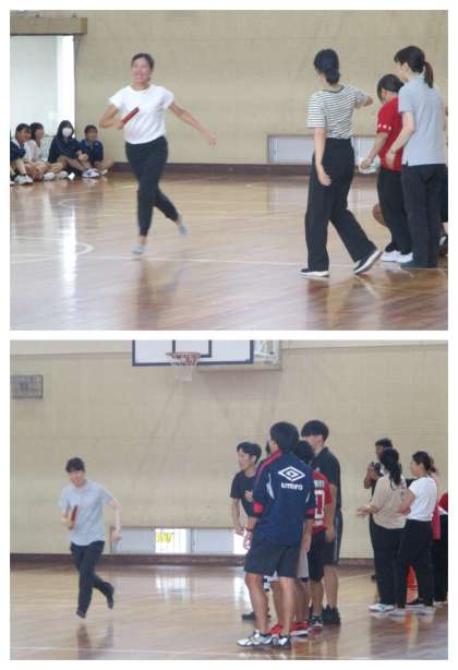 3年生:学年練習 〜インドア・リレー〜 公開日 2024/10/03 更新日 2024/10/03 学校 3日(木)、3年生は、5時間目に体育館で体育大会に向けて学年練習を行いました。 グラウンド状況が不良のため、体育館で学年種目:学級対抗全員リレーの練習をしました。練習前に、学年教職員が模範実技を披露し、競技ルールを分かりやすく説明してくれました。