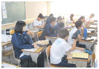 7日(月)、2年生1組の1時間目は、技術の授業でした。 家電のアース線の役割について学習していました。