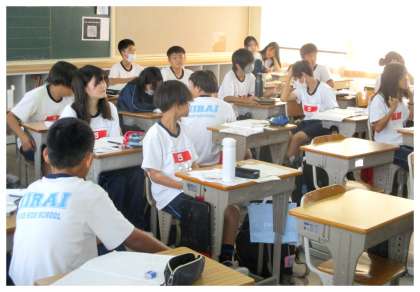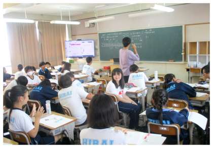 7日(月)、1年生5組の1時間目は、数学の授業でした。 生徒は、比例について学習していました。