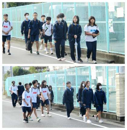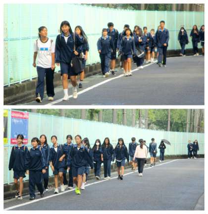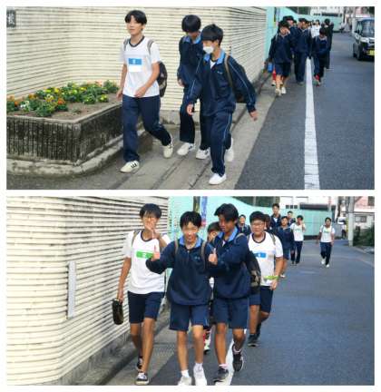 9日(水)、登校の様子です。 本日は、各学年で体育大会に向けた最後の学年練習が予定されています。