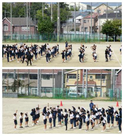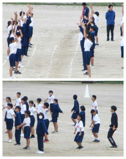 1年生:準備体操はバッチリ! 〜体育大会に向けて〜 公開日 2024/10/09 更新日 2024/10/09 学校 9日(水)、1年生は、4時間目に体育大会に向けた学年練習を行いました。 開会式のしめくくりは、参加生徒全員による準備体操です。リズムに合わせて、身体を確実に動かせるようになっています。
