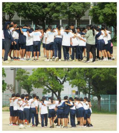 1年生:円陣 〜体育大会に向けて〜 公開日 2024/10/09 更新日 2024/10/09 学校 1年生は、学年種目のスタート直前に、各クラスで円陣を組み士気を高めます。 各クラスの特長が表れる声出しが注目ポイントです! ※写真は、上から順に3〜6組の様子です。