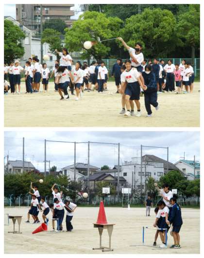 1年生:学年種目プレマッチ 〜体育大会に向けて〜 公開日 2024/10/09 更新日 2024/10/09 学校 9日(水)、1年生は、体育大会に向けた学年練習の中で、学年種目のプレマッチを行いました。 1回目のスローイングで、的となるコーンにボールが当たる確率が前回の練習より高くなっています!