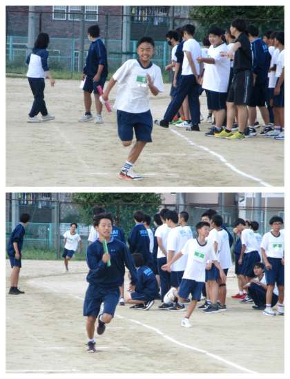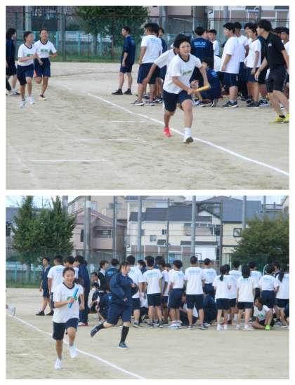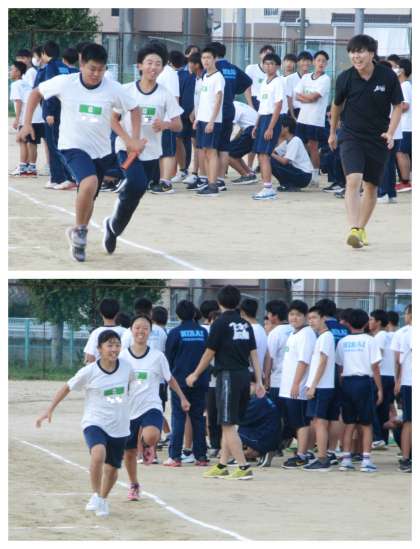 3年生: 学級対抗全員リレー プレマッチ 〜体育大会に向けて〜 公開日 2024/10/09 更新日 2024/10/09 学校 9日(水)、3年生は、6時間目にグラウンドで体育大会に向けて学年種目「one for all relay(学級対抗全員リレー)」のプレマッチを行いました。 レースのポイントは、35回のバトンパスです。次走者にスピードを維持しながら確実にバトンを渡すことが勝利への必須条件のようです!