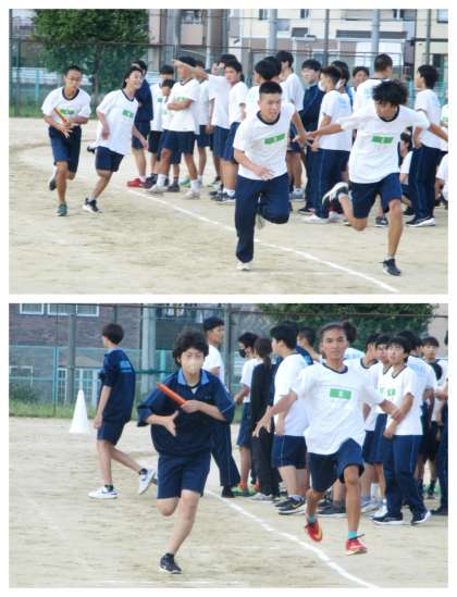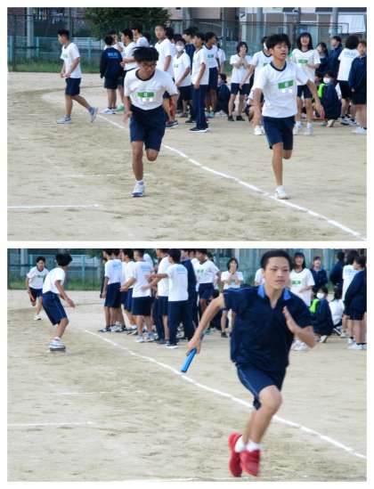 3年生: 学級対抗全員リレー プレマッチ 〜体育大会に向けて〜 公開日 2024/10/09 更新日 2024/10/09 学校 9日(水)、3年生は、6時間目にグラウンドで体育大会に向けて学年種目「one for all relay(学級対抗全員リレー)」のプレマッチを行いました。 奇数走者は本部席前から、偶数走者はバックストレートの生徒席からスタートします。