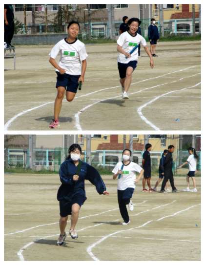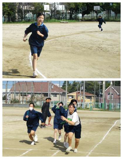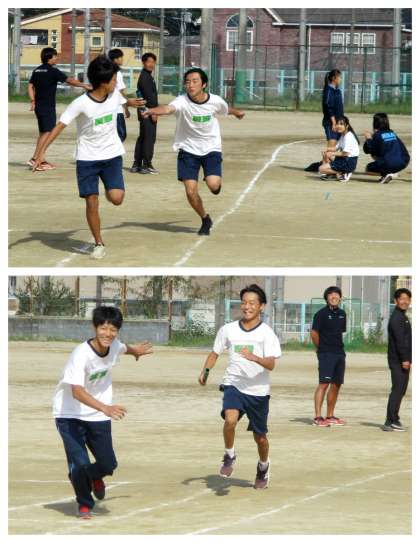 3年生の保健体育の授業では、学年種目:学級対抗全員リレーの練習をしています。