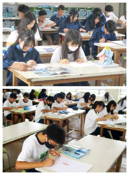 15日(火)、3年生3組の3時間目は、美術の授業でした。
