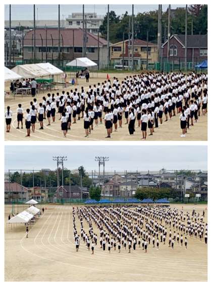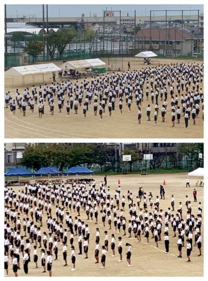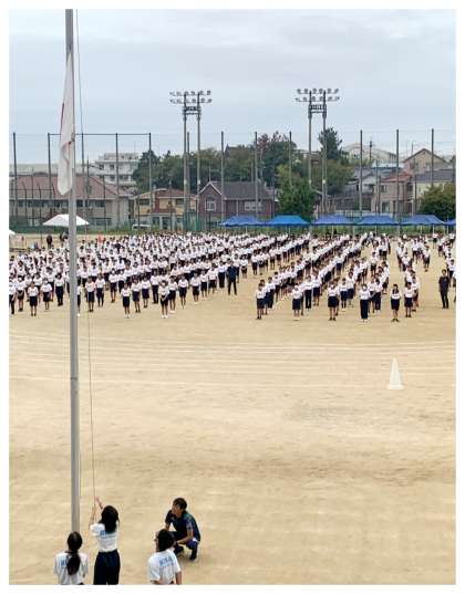 16日(水)、体育大会の予行を行いました。写真は、開会式の様子です。 当日は、午前8時50分に開会予定です。