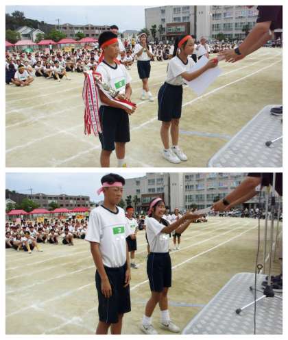 式では、競技結果と学級旗の審査結果が発表されました。