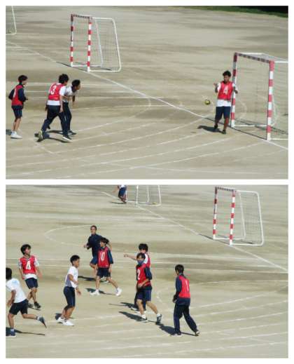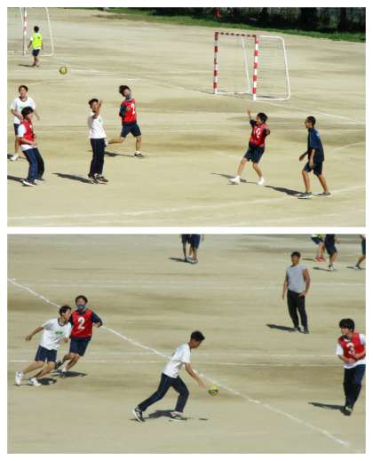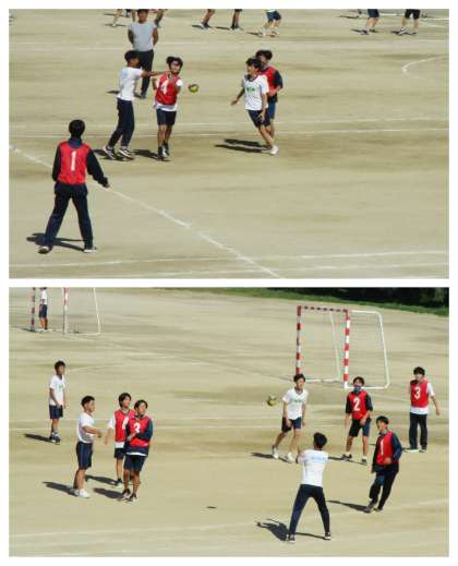3年生5・6組の授業(保健体育)の様子 公開日 2024/10/21 更新日 2024/10/21 学校 21日(月)、3年生5・6組の2時間目は、保健体育の授業でした。 ゲーム形式でのハンドボール練習が始まっていました。