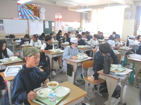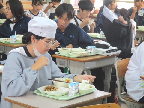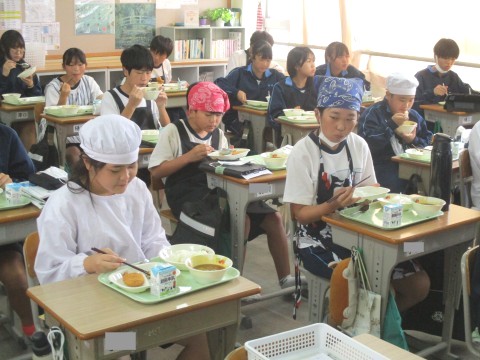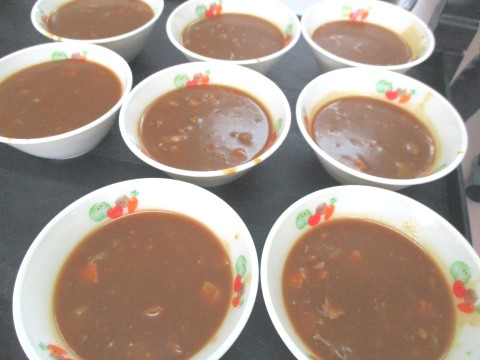 豚肉のうま味と野菜の甘みがじっくり溶け込んだルウとライスは、ベストなマッチングでした。配膳時には、喫食を楽しみにする生徒たちからは、笑顔が見られました!