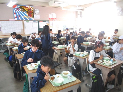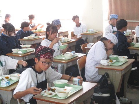 1年生4組の喫食の様子