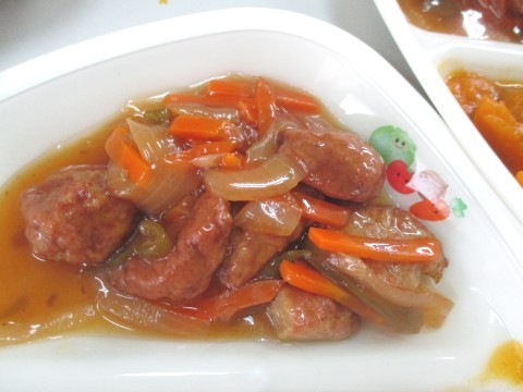 16日(木)、主菜は、肉団子の甘酢あんかけでした。