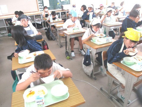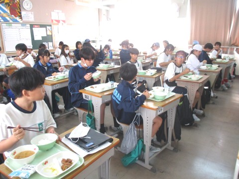 1年生4組の喫食の様子 ~ジュワッとおいしい😀~