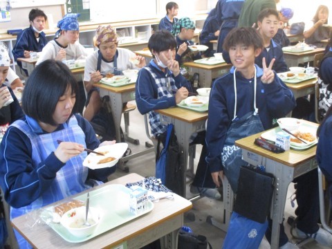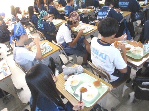 3年生2組の喫食の様子 ~たまねぎも主役~