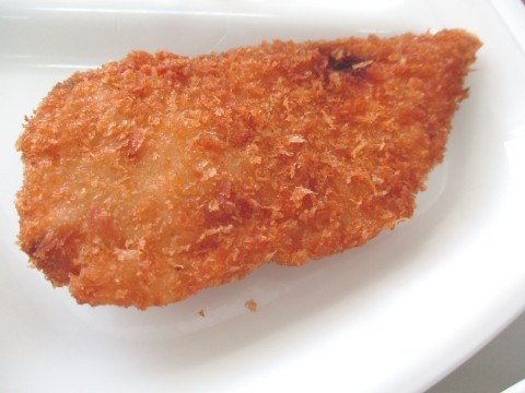 副菜は、サーモンのフライでした。サーモンの身の色は、エサとして食べているエビ、カニやオキアミに含まれている色素が影響しているようです🐟
