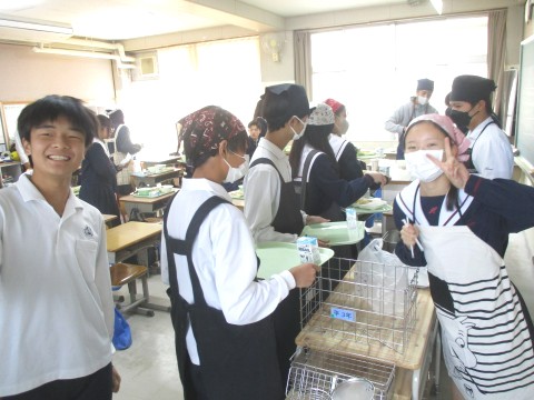 豚肉と厚揚げからはたんぱく質、野菜からはビタミンや食物繊維がとれる栄養バランスの良い一品でした。生徒の中には、ご飯の上にのせて、「みそ厚揚げ丼」を作って食べている生徒もいました。
