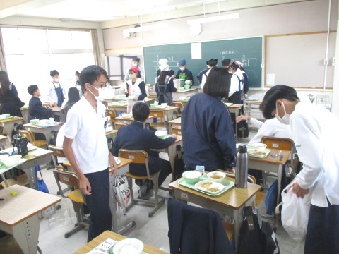 1年生4組の喫食の様子 ~Mozuku seaweed!~