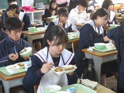 • 1年生2組の喫食の様子 ~Nagasaki-style fritters~