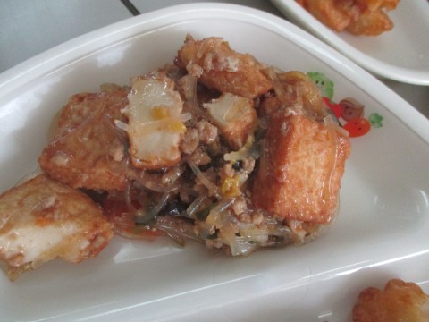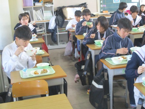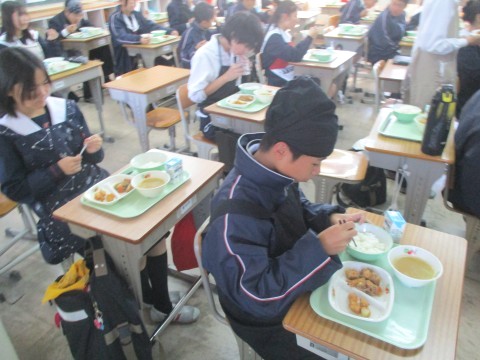 • 2年生3組の喫食の様子 ~Deep-fried tofu~