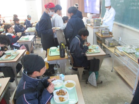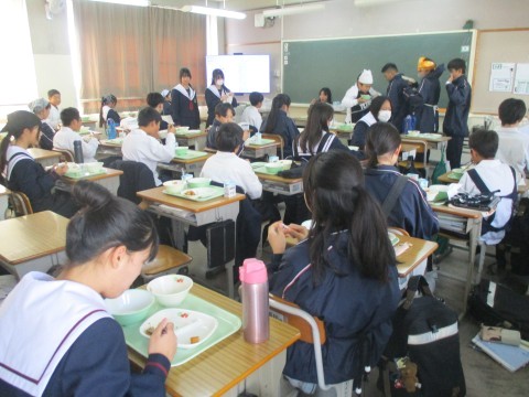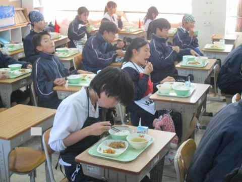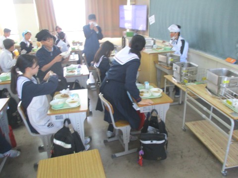 • 1年生4組の喫食の様子 ~思わず笑顔になる一品~