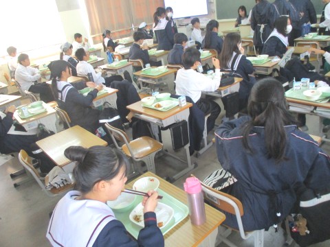 • 1年生2組の喫食の様子 ~12日(水)は給食停止日~