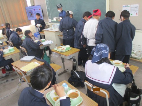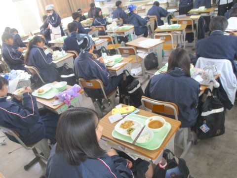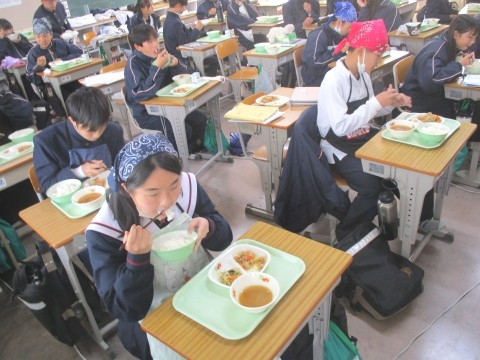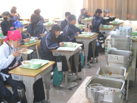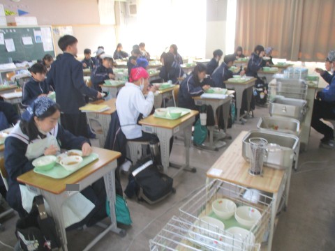 1年生2組の喫食の様子 ~12日(水)は給食停止日~