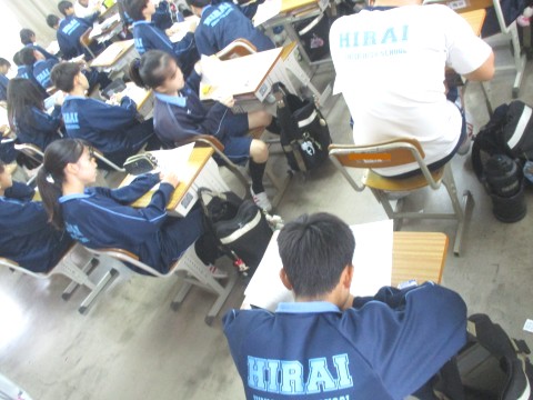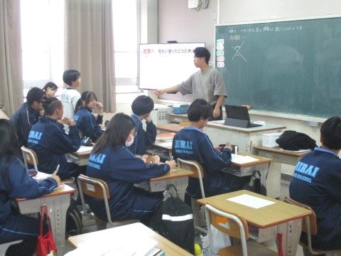 21日(火)オープンスクール1日目、2年生1・2組の2時間目は、教室での保健体育の授業でした。