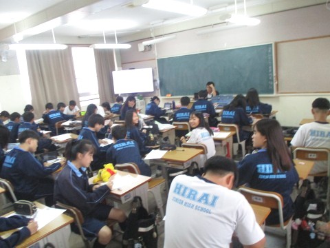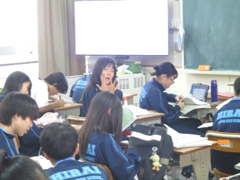 21日(火)オープンスクール1日目、2年生6組の2時間目は、英語の授業でした。