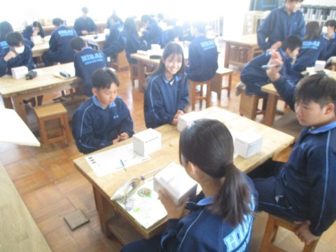 22日(火)オープンスクール2日目、2年生3組の1時間目は、美術の授業でした。