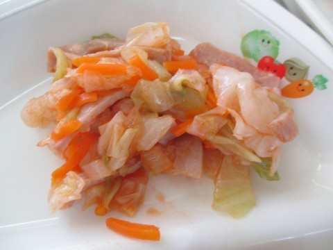 副菜は、イタリアンサラダでした。具材のハム・キャベツ・にんじん・たまねぎにトマトピューレとにんにくで風味がプラスされた味わい深い一品でした。