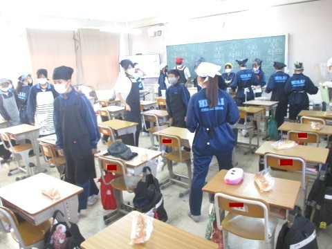 2年生3組の配膳の様子 ~パンの日~