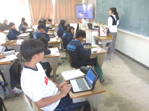 22日(火)オープンスクール2日目、2年生5組の1時間目は、社会の授業でした。