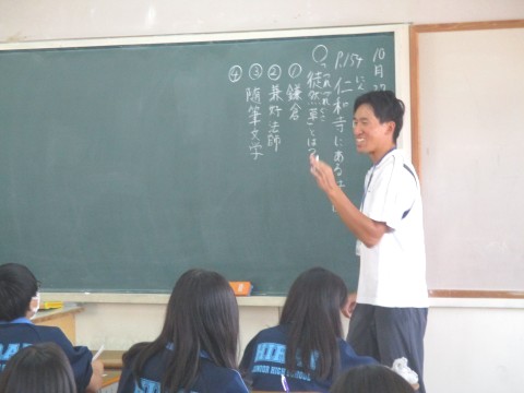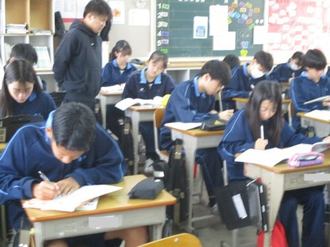 生徒は、音読練習に一生懸命に取り組んでいました。