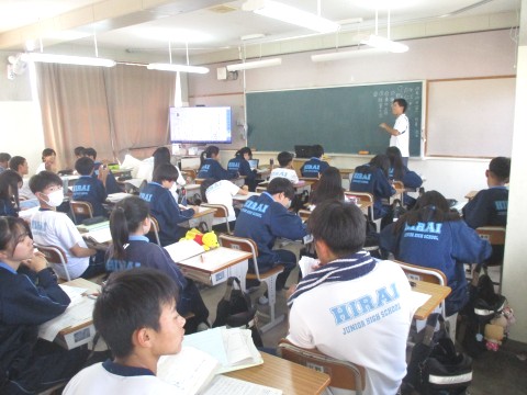 23日(木)オープンスクール最終日、2年生5組の2時間目は、社会の授業でした。