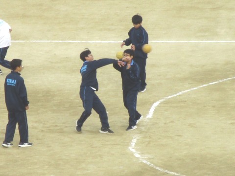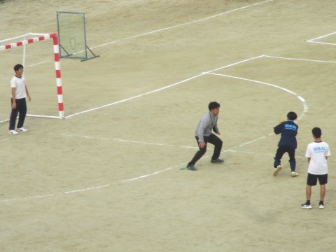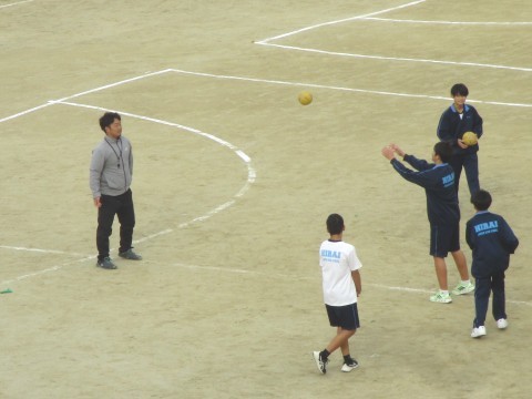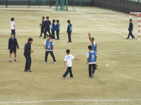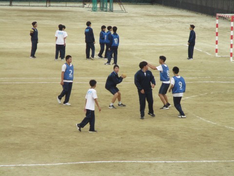 男子生徒の授業では、ハンドボールの学習が始まっていました。