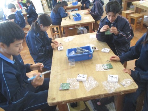実習を通して、生徒は、電子部品の役割について理解を深めたり、はんだ付けの技法を習得したりします。