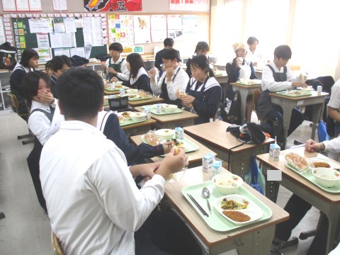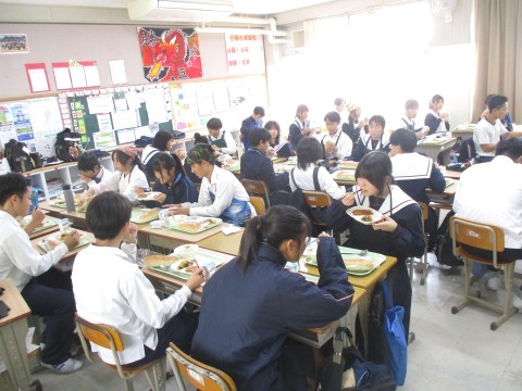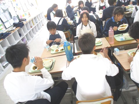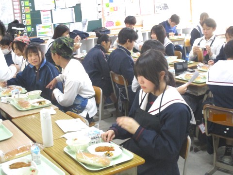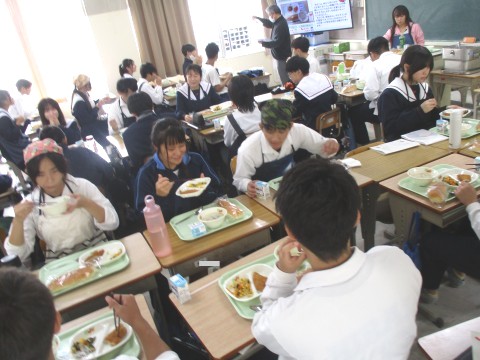 担任の先生が、机間を巡回しながら、余った甘露煮を希望生徒に配膳してくれていました。