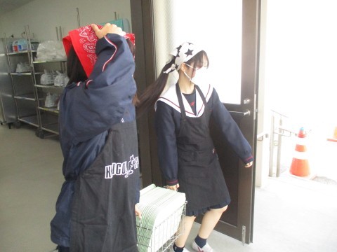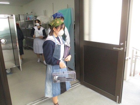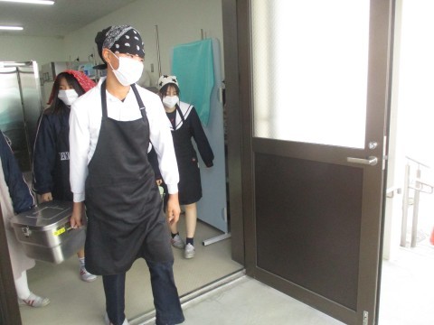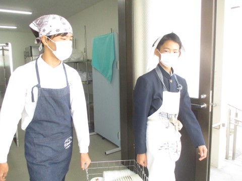 各クラスとも、16人前後の係り生徒が、準備や返却のために配膳室を訪れます。
