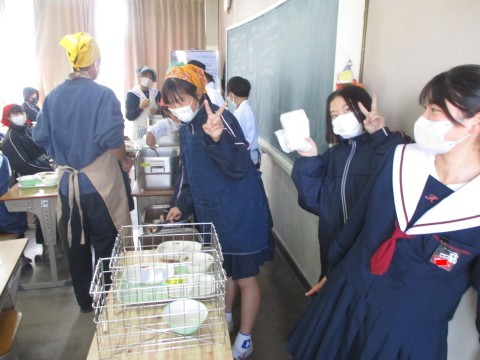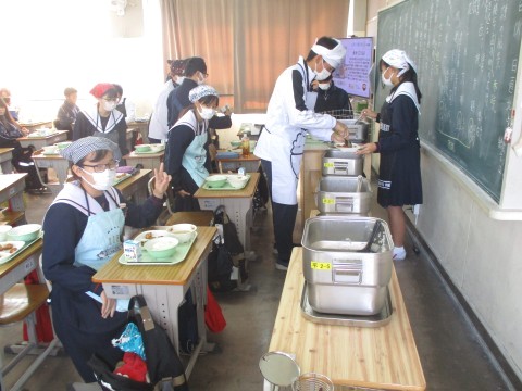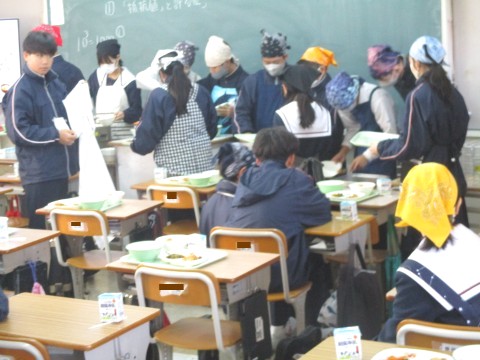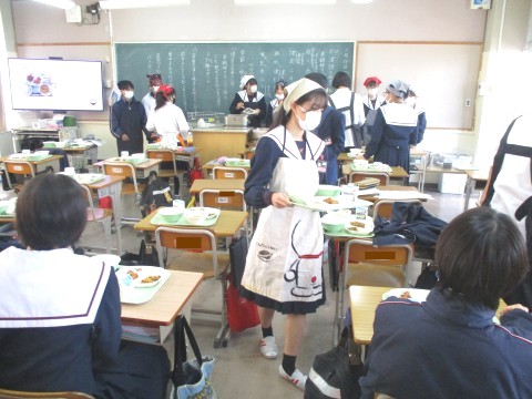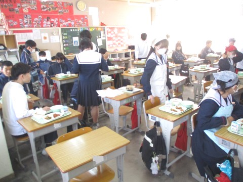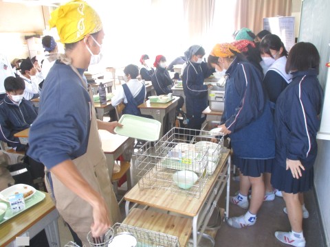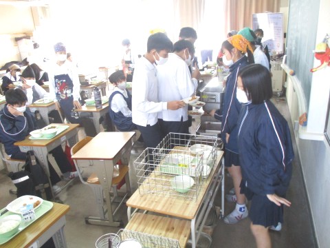 2年生2組:配膳の様子 ~生徒の心づかいに先生も感激~