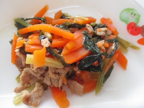 豚肉のうま味が小松菜とにんじんに染みわたり、絶妙な甘辛ダレが全体を包み込むように調理の工夫がされていました。