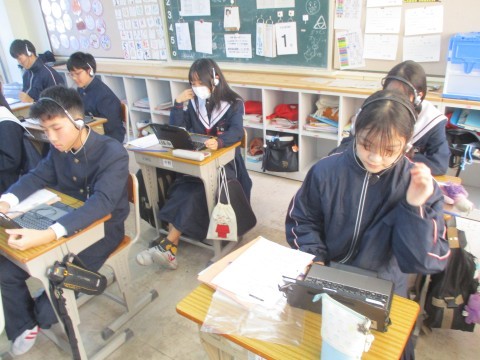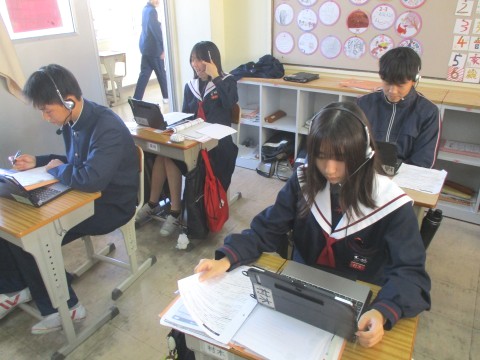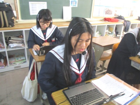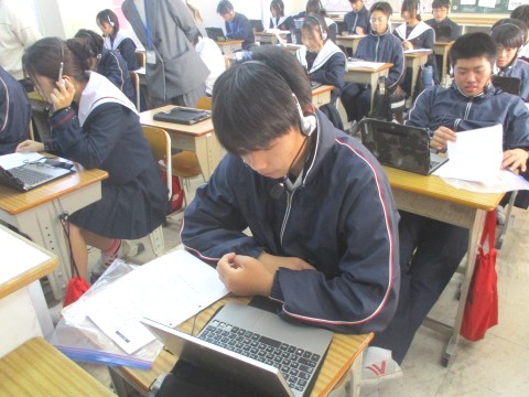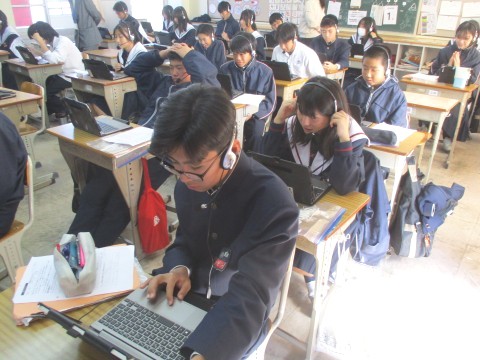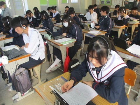午後12時のスタートと同時に、 Hello! I'm happy to see you. Thank you. などの英語が教室中を飛び交っていました。