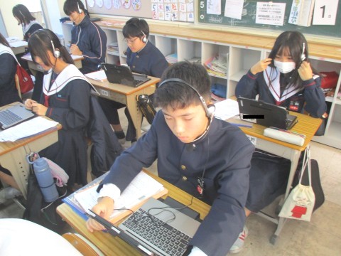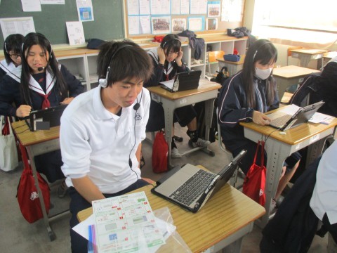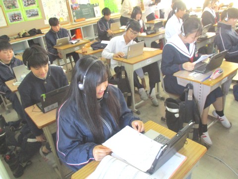 本日、17日(月)より、2年生では、オンライン英会話レッスンが始まりました。