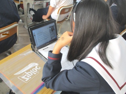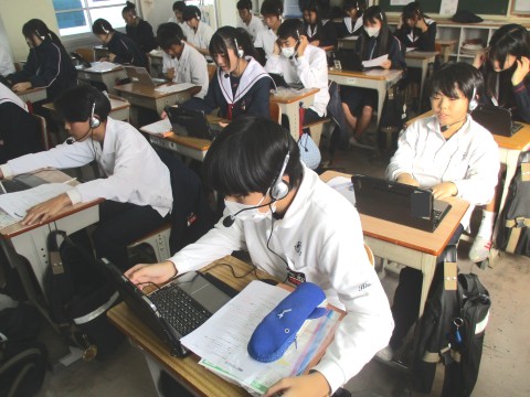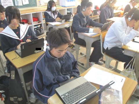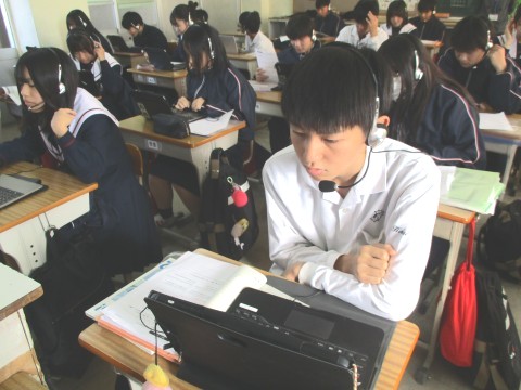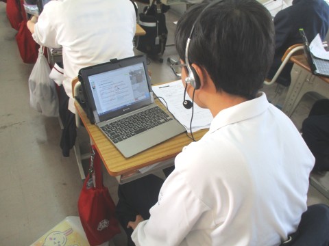 今週より、2年生では、オンライン英会話レッスンに取り組んでいます。